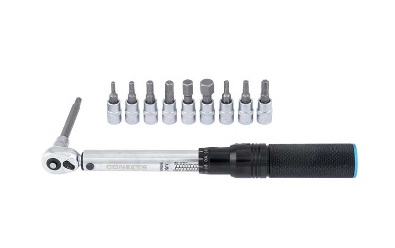 Das richtige Anzugsdrehmoment ist besonders bei Vorbau, Sattelklemme, Sattelstütze und Carbonanbauteilen wichtig. Der CONTEC Drehmomentschlüssel ermöglicht das präzise Anziehen gemäß Vorgabe: Dazu wird das Drehmoment einfach durch Drehen am Griff eingestellt. Das Werkzeug verfügt über ein 1/4"-Aufnahme und wird mit einem 9-teiligen Bit-Satz mit 3-, 4-, 5-, 6-, 8- und 10-mm-Innensechskant sowie T25- und T30-Torx und 5-mm-Innensechskantverlängerung geliefert.