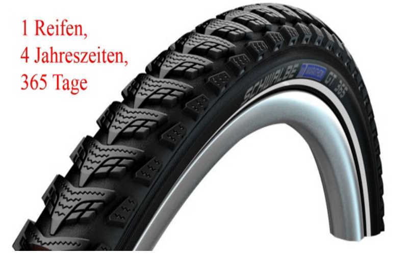 1 Reifen, 4 Jahreszeiten, 365 Tage kein Reifenwechsel nötig 700x35C 37-622 Der Marathon GT 365 ist der erste Reifen, der dich das ganze Jahr über in nahezu allen Wettersituationen sicher fahren lässt. Das neue Lamellen-Profil und das speziell entwickelte „FourSeason“-Compound sorgen für satten Grip, egal in welcher Jahreszeit du mit dem Rad unterwegs bist. Natürlich ausgestattet mit DualGuard Pannenschutztechnik für höchste Sicherheit. Luftdruck in Bar: 2-6 Bar Luftdruck in PSI: 30-85 TPI: 67 Pannenschutz: DualGuard Tread compound: FourSeason