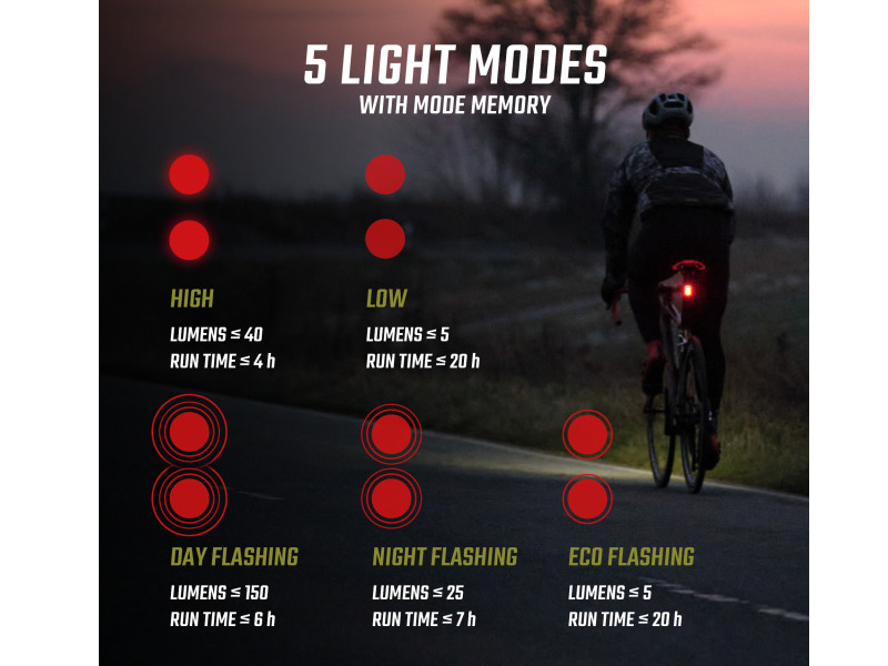 -Bis zu 150 Lumen, 2000 Meter Sichtbarkeit, Bremslichtfunktion und fünf Lichtmodi für Tag und Nacht