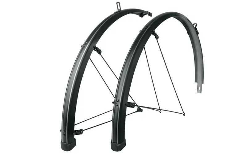Im Pinstripe Look mit grauen Streifen verleiht dem Fahrrad eine tolle Optik. Die schwarzen Streben und der Kantenschutz mit SKS-Logo machen die cleane Optik perfekt