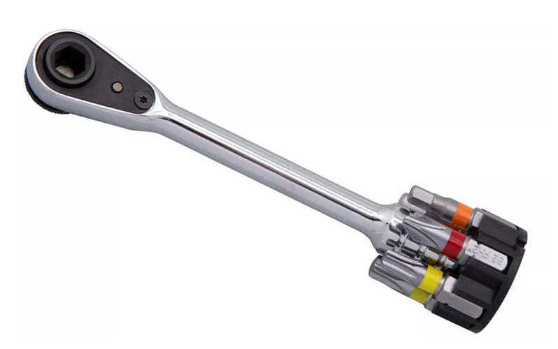 Steckschlüssel-Ratsche mit Umschaltfunktion, 2 magnetische 1/4" Bit-Aufnahmen, 6 Bits inklusive, Aufbewahrung in robuster Aluminium-Hülle mit Bit-Halter
