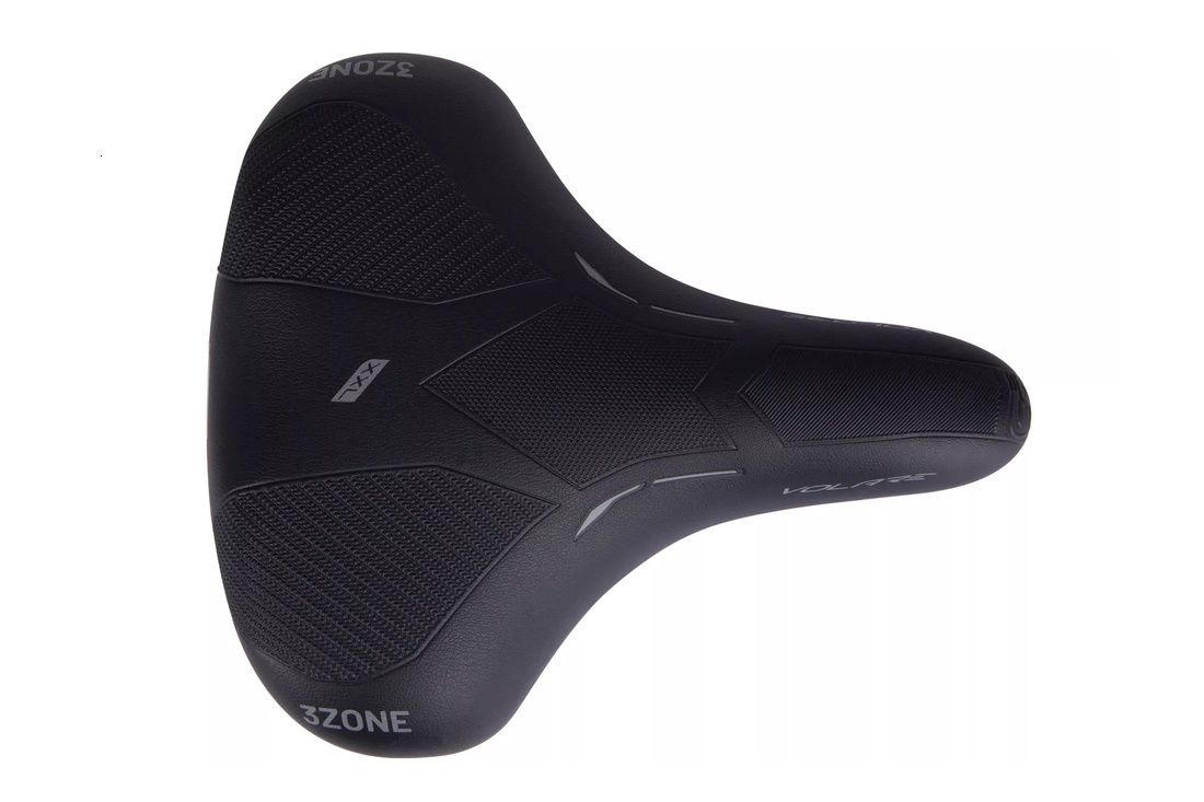 Zum einen unterstützt eine dichte Polsterung im hinteren Bereich des Sattels eine aufrechte Sitzhaltung. Zum anderen befindet sich davor eine weiche Komfortzone, dank der das Gesäß willkommene Entlastung findet. Ganz vorne wiederum ist eine flache Polsterzone angeordnet. Sie unterstützt eine sportliche, dynamische Fahrweise.