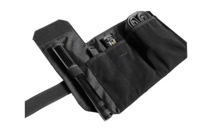 Einzurollende Satteltasche mit vielen praktisch angelegten Innenfächern für Pumpe, Tools, Schlauch, Pneuheber und Co2 Kartuschen etc
