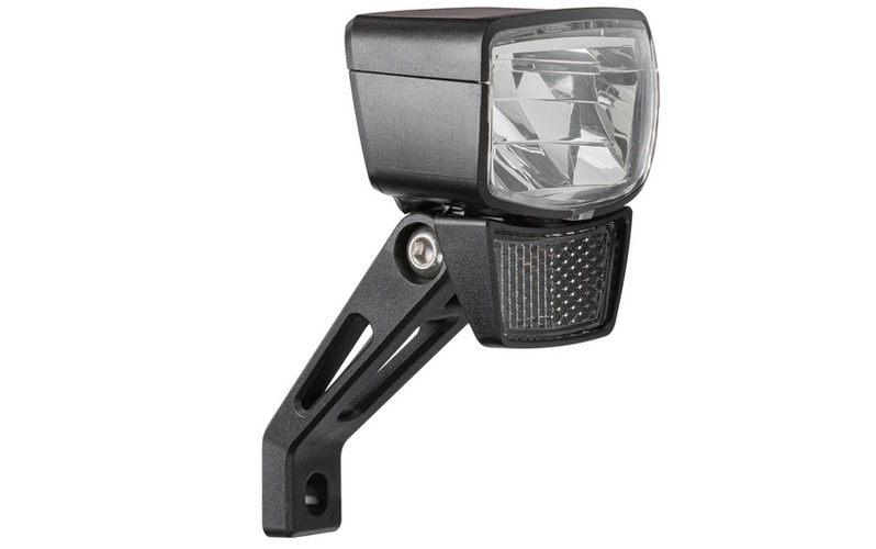 Der Frontscheinwerfer hat ein ergonomisches Design, das perfekt zur Geometrie der E-Bikes passt! Der integrierte Reflektor ist ein zusätzlicher Sicherheitsaspekt, da Sie von anderen Verkehrsteilnehmern besser gesehen werden.