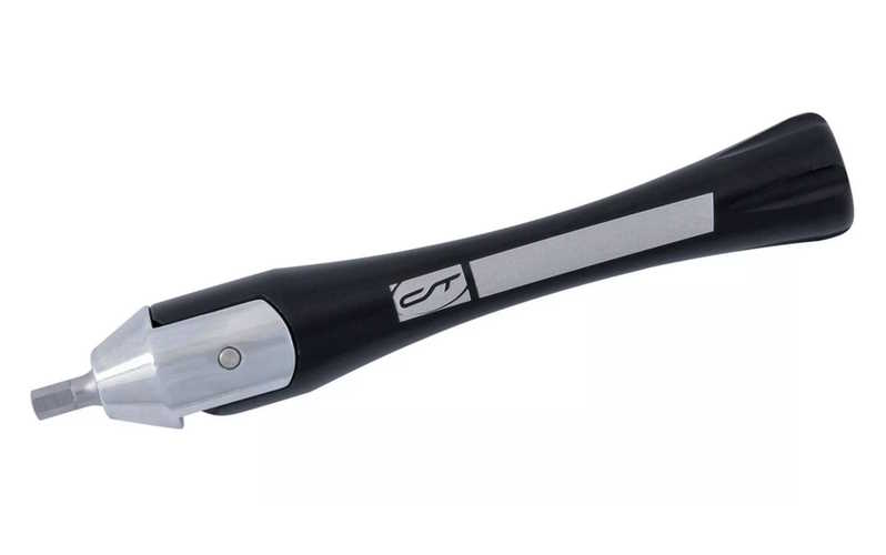 Mit dem Schwenkkopf lässt sich das "Multifunktionswerkzeug so bedienen, dass man die Schraube auch aus einer Schräge optimal erreichen kann bis zu einer L-Position mit bester Hebelwirkung. Die sechs Bits dazu warten im Griff auf ihren Einsatz. Dazu gehören Innensechskant-Bits in 4 mm, 5 mm und 6 mm, die Innensechsrund-Schlüssel T25 und T30 sowie ein PH1 Kreuzschlitzschraubendreher. Zum Mitnehmen geeignet sind die Länge von 12 cm sowie das Gewicht von 75 g des Multitools.