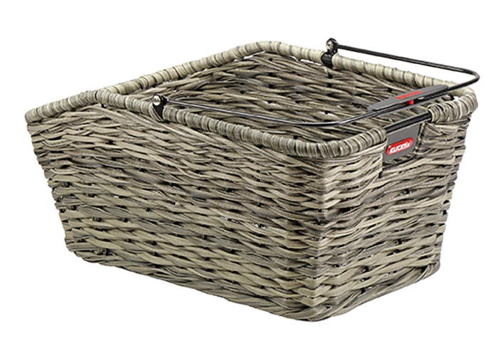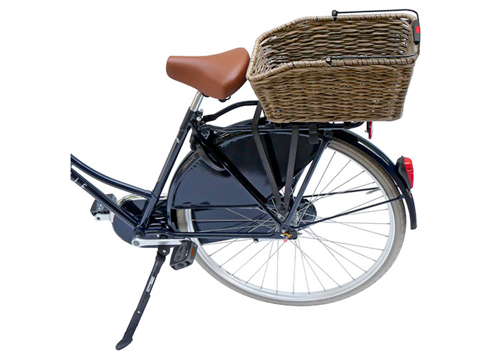 Passend zu den geflochtenen Lenkerkörben die längs orientierte Variante für den Gepäckträger
