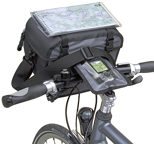 - Wasserdichte Lenkertasche mit ausklappbarem Fach für Navigationsgeräte