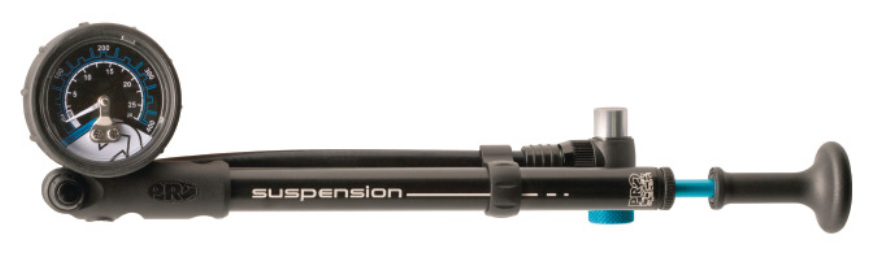 Pumpe für Federgabeln und Hinterbaudämpfer Maximaldruck: 28 bar / 400 PSI Magnet-Lock-System 4 cm Manometer mit feinregulierbarem Luftablass Zylinder und Handgriff aus eloxiertem Leichtmetall